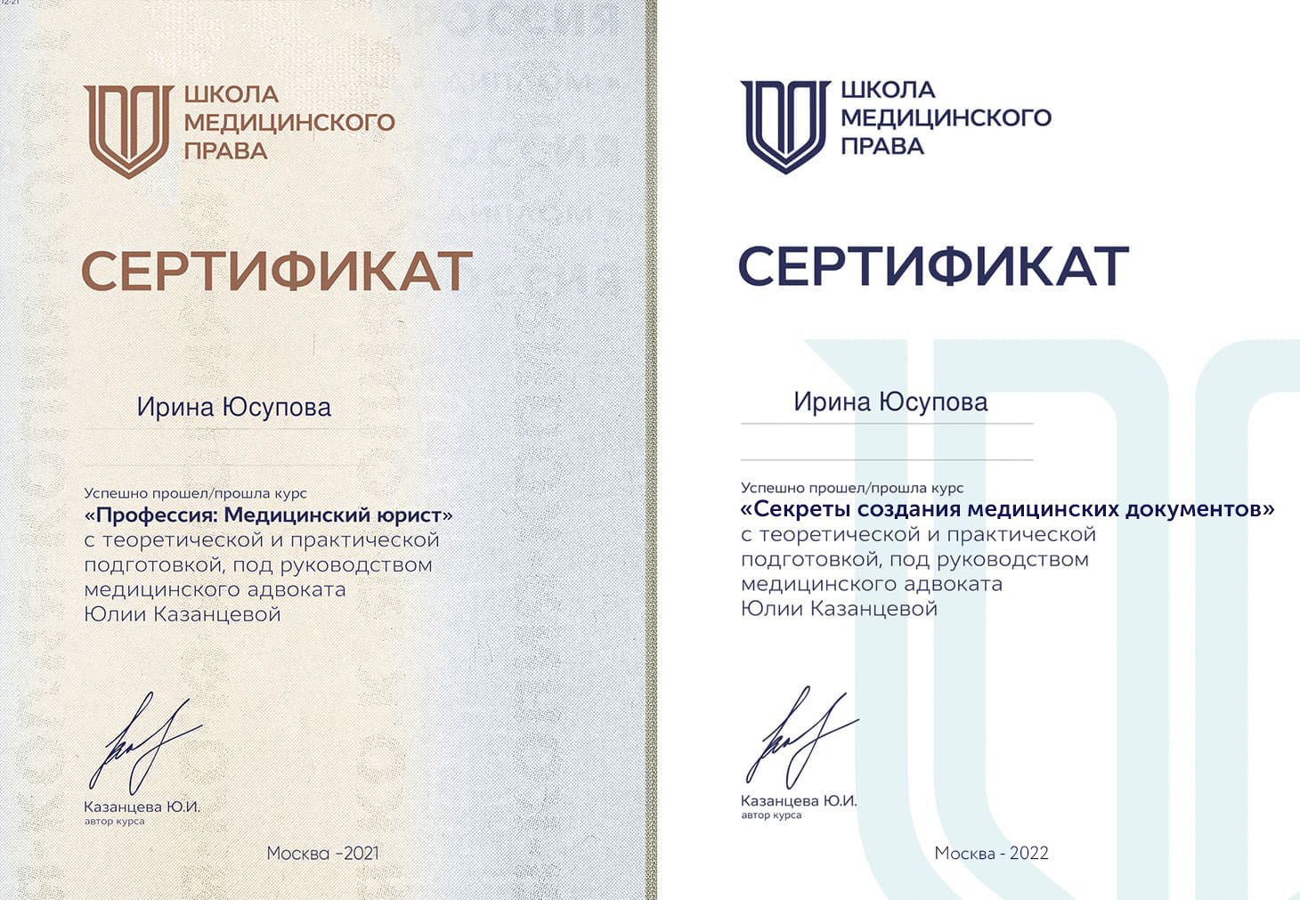 В 2021 году окончила курс «Профессия: Медицинский юрист» с теоретической и практической подготовкой.